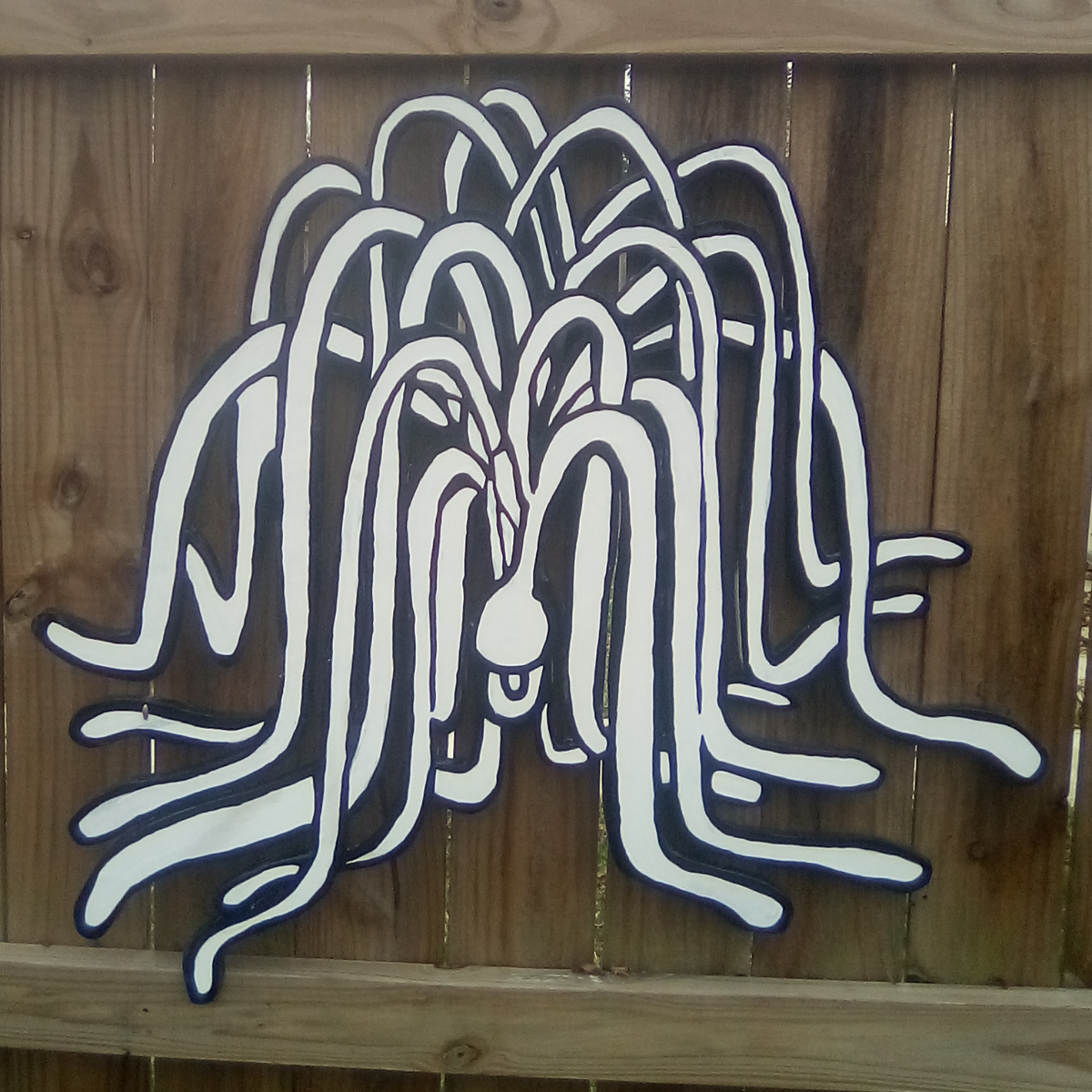 enamel on plywood LOST - probably stolen from the bar that bought it. Last seen by a friend lying on the sidewalk on Magazine Street.