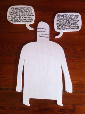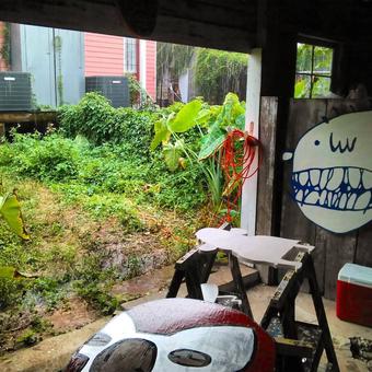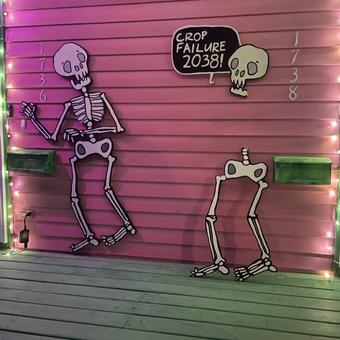 art December 1, 1977 Influences: the art of Don Martin. We stuck these sound effects stickers on our dresser and our closet door. December 4, 2003 I had an art show with Mimi at Circle Bar. Back when the Mod Dance Party needed some support, I guess. October 7, 2007 My neighbor Talisha drew me some flowers. Her little brother wrote "FUCK YOU" on my front door. April 25, 2008 The Brooklyn Street Art show is this weekend. Jimmy and the Wolfpack will be playing the after-party. June 5, 2008 I've got some pieces showing in Bushwick Open Studios this weekend. They're up on the roof at 100 Thames Street. August 22, 2012 Painted a two-mouth creature. It might as well have one mouth since both mouths sing Eighties lyrics. August 19, 2017 I saw Wayne-O-Rama in Chattanooga. I also saw the Wayne White museum show, but this might have been more fun. August 20, 2017 I saw the Wayne White exhibit at the Hunter Museum in Chattanooga. A really fun show. September 19, 2017 I took pictures of my shed at 321 Clark Street in the rain. Nice place to work. Too bad it flooded so much. June 26, 2020 Influences: Milton Glaser. Today was his ninety-first birthday but also his last day. November 7, 2020 Gina was part of a small show at Jonathan Ferrara Gallery. First art show I'd seen druing the pandemic. March 6, 2021 Gina's show, Shape-Memory, officially opened today. July 26, 2022 I had possibly the most intense dream of my life. December 26, 2025 My skeleton art got wrecked by a deranged person. I think I have it almost put back together. December 27, 2025 My artwork got vandalized, but I repaired it. ← Timeline index