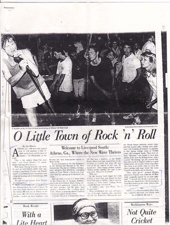Athens August 29, 1984 I took the family car and went to see a rock show in Athens though I was underage. The Washington Post thought it worthy of mention. September 29, 2000 Dirty Knives played with The Woggles at Tasty World in Athens. I guess the Woggles had a guarantee and we didn't but they gave us ten bucks for gas. September 13, 2001 Dirty Knives played Tasty World in Athens. It was just two days after 9/11. January 9, 2003 All-Night Movers started a Southern tour. We started in Athens but we didn't actually play there. December 31, 2023 The Stacks played with Mercyland in Athens, Georgia. It was a good show ← Timeline index