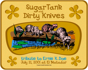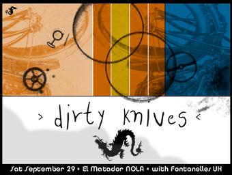 Dan Haugh November 15, 2000 Dirty Knives played with Rock*A*Teens at Tipitina's, I think. I honestly don't recall playing Tip's twice but I guess we did. July 21, 2001 Dirty Knives played El Matador with Sugar Tank. At the end of our set Trey hopped down the little steps at the side of the stage, smashing them to bits. September 7, 2001 Dirty Knives played Checkpoint's with The Wednesdays. September 29, 2001 Dirty Knives played at El Matador with Fontanelles UK. November 2, 2001 Dirty Knives played Mermaid Lounge with Immortal Lee County Killers. Immortal Lee County Killers' drummer J.R.R. Tokin' used his floor tom strictly as a coffee table. February 28, 2006 Mardi Gras 2006 non-costume. This picture really expresses how I felt at the time. January 4, 2020 The Stacks played the Circle Bar with Chef Menteur and Good Sugar. This was Court Batson's first appearance with Chef Menteur. ← Timeline index
