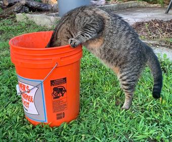 danger September 9, 2016 A lunch hour disaster was averted. I was walking down 6th Street in Austin one lunch hour when I saw a group of people with cameras out, looking up. June 2, 2020 Buddy getting in a bucket. Ignoring the peligro. ← Timeline index