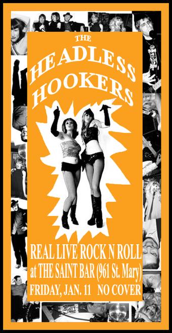 Headless Hookers March 30, 2007 Headless Hookers played a closing party for Coyote Studios at Zablozki's. First time at Zablozki's. August 5, 2007 I played drums with The Headless Hookers at Passout Records. It was hot. I was underdressed. November 4, 2007 Headless Hookers played at Otto's Shrunken Head. No cover. December 4, 2007 Headless Hookers played at Lit Lounge. January 11, 2008 Headless Hookers played at The Saint. I stayed up all night to catch a morning plane. October 19, 2009 Headless Hookers played at Zablozki's. It was a bar in Williamsburg Brooklyn. ← Timeline index