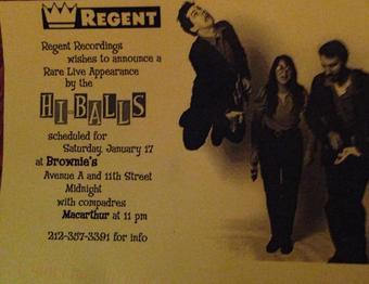 Hi-Balls April 1, 1996 Hi-Balls did a photo shoot. When they bring out the white seamless, you've made it. August 27, 1996 We attempted to silkscreen the Hi-Balls record sleeve. We tried making the Hi-Balls 7" with a rudimentary silkscreen apparatus. (A Speedball kit.) It didn't work out. November 1, 1996 The Hi-Balls record got reviewed in some magazines. Maximum Rock and Roll thought it was great. February 2, 1997 Hi-Balls played at Brew's with Burnley Vest and MacArthur. When they bring out the white seamless, you've made it. March 2, 1997 The Hi-Balls played The Continental on my birthday. Great show. Al gave me a plaque. April 12, 1997 The Hi-Balls played an acoustic gig for a party at some guy named Karl's house. We wrecked the place. January 16, 1998 rehearsed at Prince Studio, probably with Hi-Balls. Most of the studios were on 30th Street. January 17, 1998 Hi-Balls played Brownie's with MacArthur. I need details. March 30, 2001 Hi-Balls played the Strathmore Ballroom. October 20, 2001 We went to Dallas for Shannon and Tom's wedding. ← Timeline index