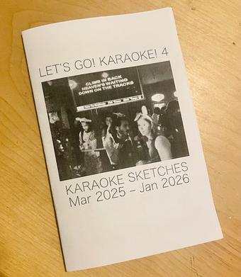 publications February 25, 2026 I made a new 'zine, Let's Go Karaoke 4: Karaoke Sketches Mar 2025 - Jan 2026. You can just ask me for one, or sign up for my newsletter. ← Timeline index