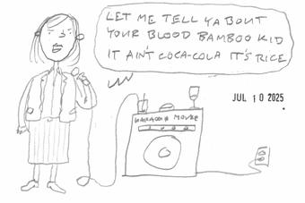 Straight To Hell July 10, 2025 I drew a cartoon based on a lyric that suddenly seemed absurd to me. Though all these karoke cartoons are of lyrics that seem absurd to me. ← Timeline index